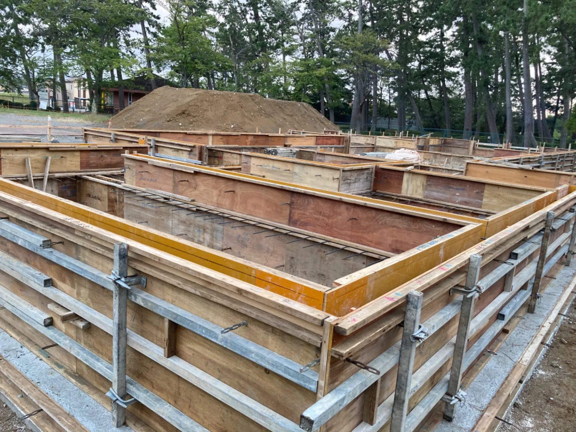 基礎工事の画像ですが土間差しが多いので全ての型枠は加工になり大変でしたけど現場の組み立てでわ楽しく早く終わりよかったです。一緒頑張ってくれる方は是非大西組に!